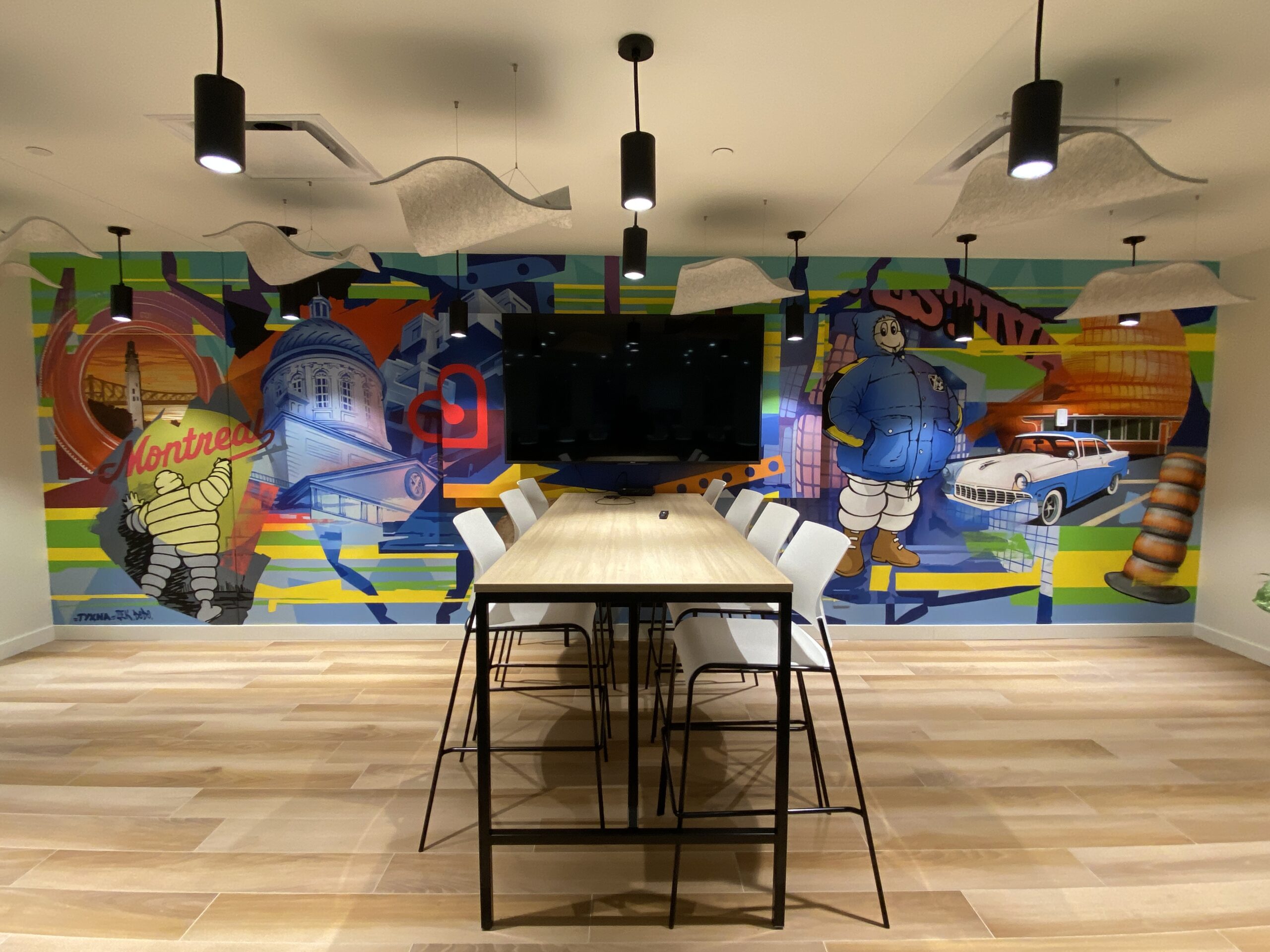 La Ville de Drummondville a mandaté le collectif Projet TYXNA pour réaliser « Élan », une murale intérieure de grande envergure visant à renforcer l’identité visuelle du centre sportif Girardin et à enrichir l’expérience d’accueil.