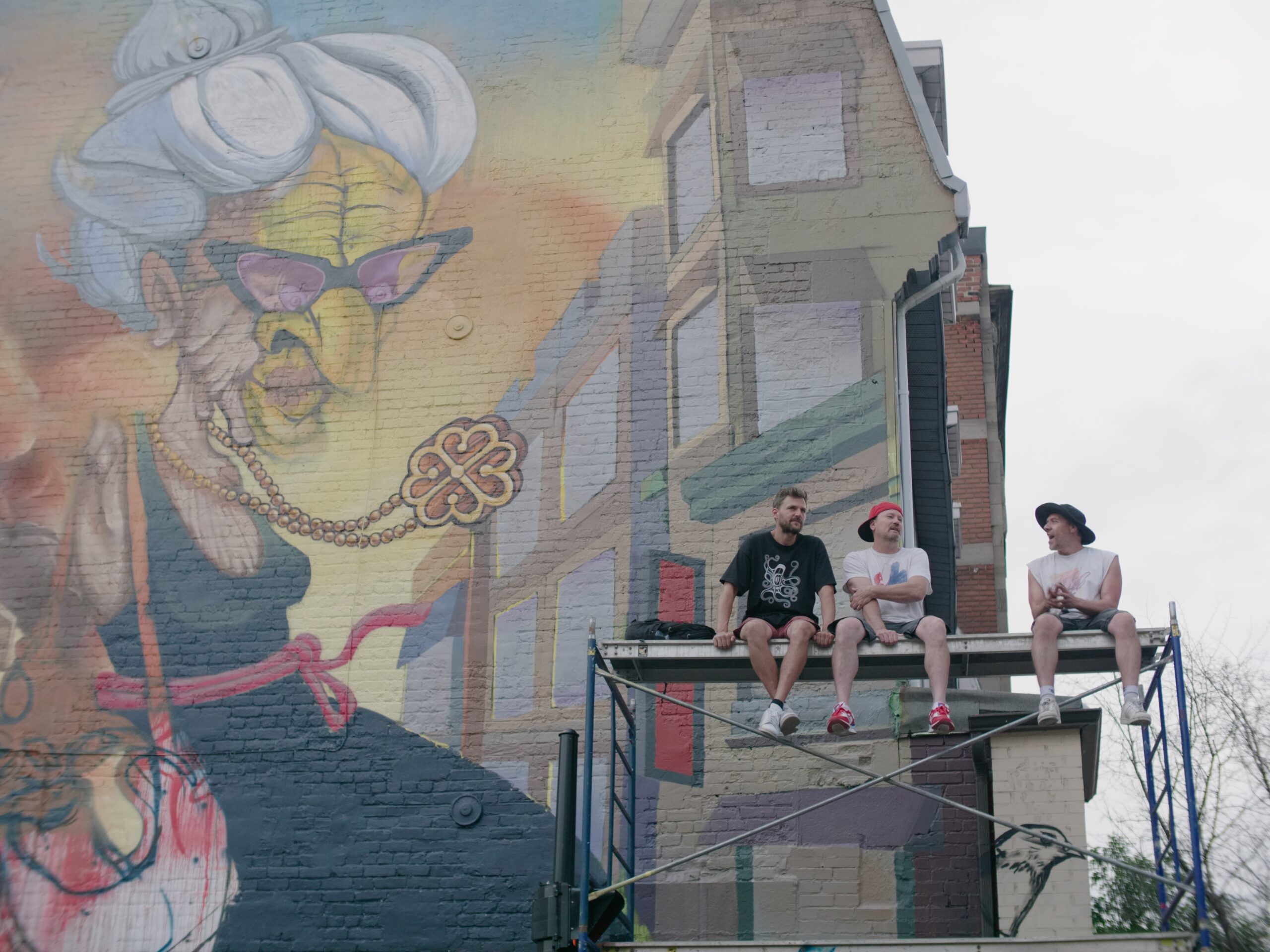 La création de la murale a également été portée par une programmation musicale exceptionnelle. Musiciens, DJs, rappeurs et producteurs ont animé le boulevard du matin jusqu’à la nuit, malgré le soleil ou la pluie, offrant une ambiance intime et vibrante. Leur énergie a fusionné avec celle du projet au point de donner l’impression que Mémé elle-même se mettait à danser au cœur du festival, tandis qu’une mise en scène avec des acteurs au pied de la murale renforçait encore l’immersion du public.