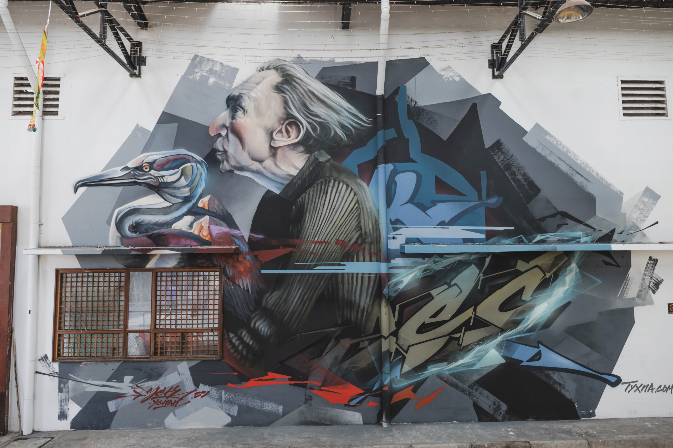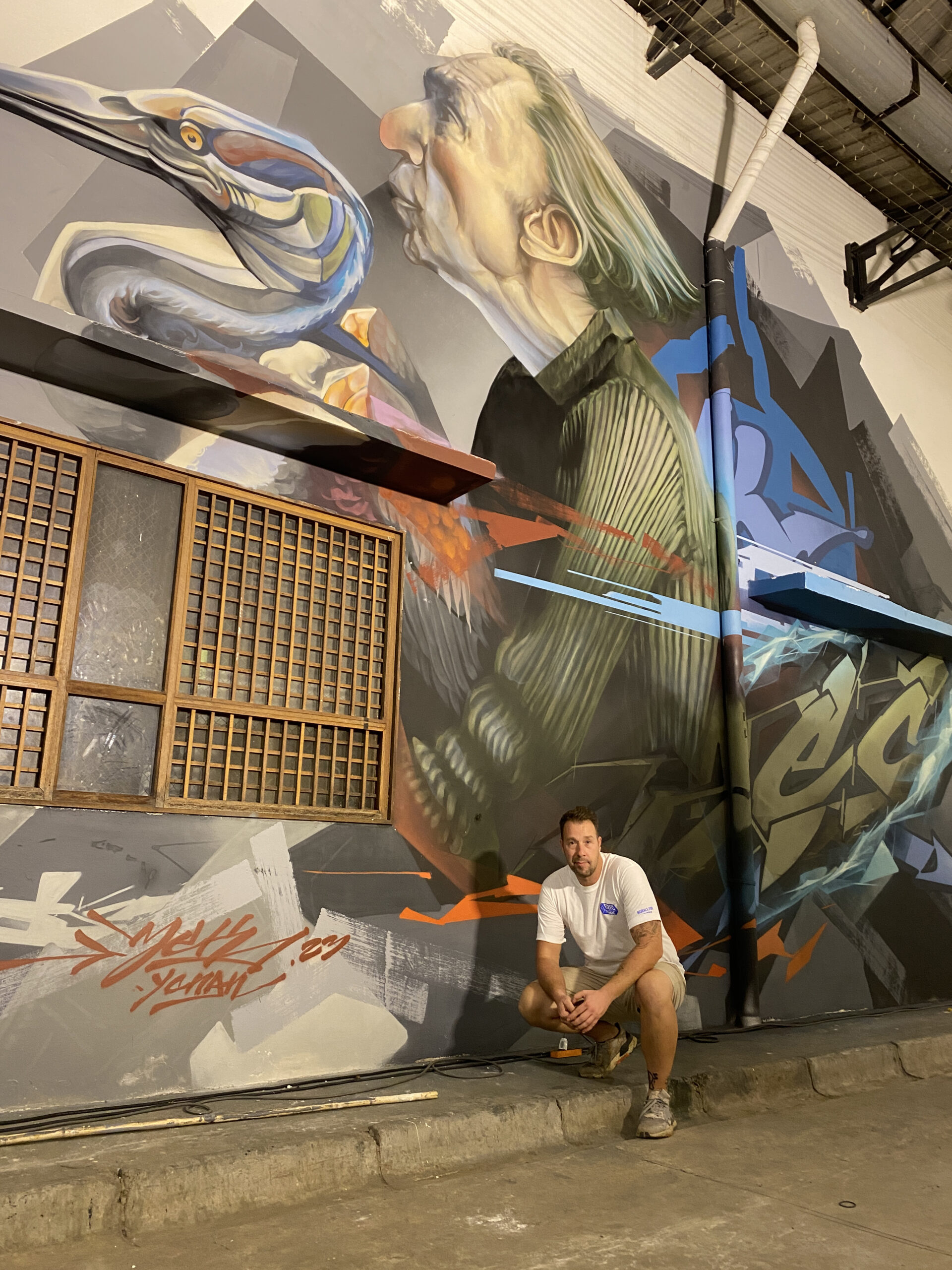 La seconde murale, considérée comme l’œuvre principale du festival, a été réalisée dans la capitale, Phnom Penh, durant l’acte central de l’événement. L’œuvre a été peinte par Zek, assisté par Ycnan. Elle représente un homme qui voyage enfin en Asie après en avoir rêvé pendant de nombreuses années. La composition suggère un déplacement symbolique, donnant l’impression que le personnage voyage à dos d’oiseau, une métaphore du rêve qui prend forme et devient réalité.